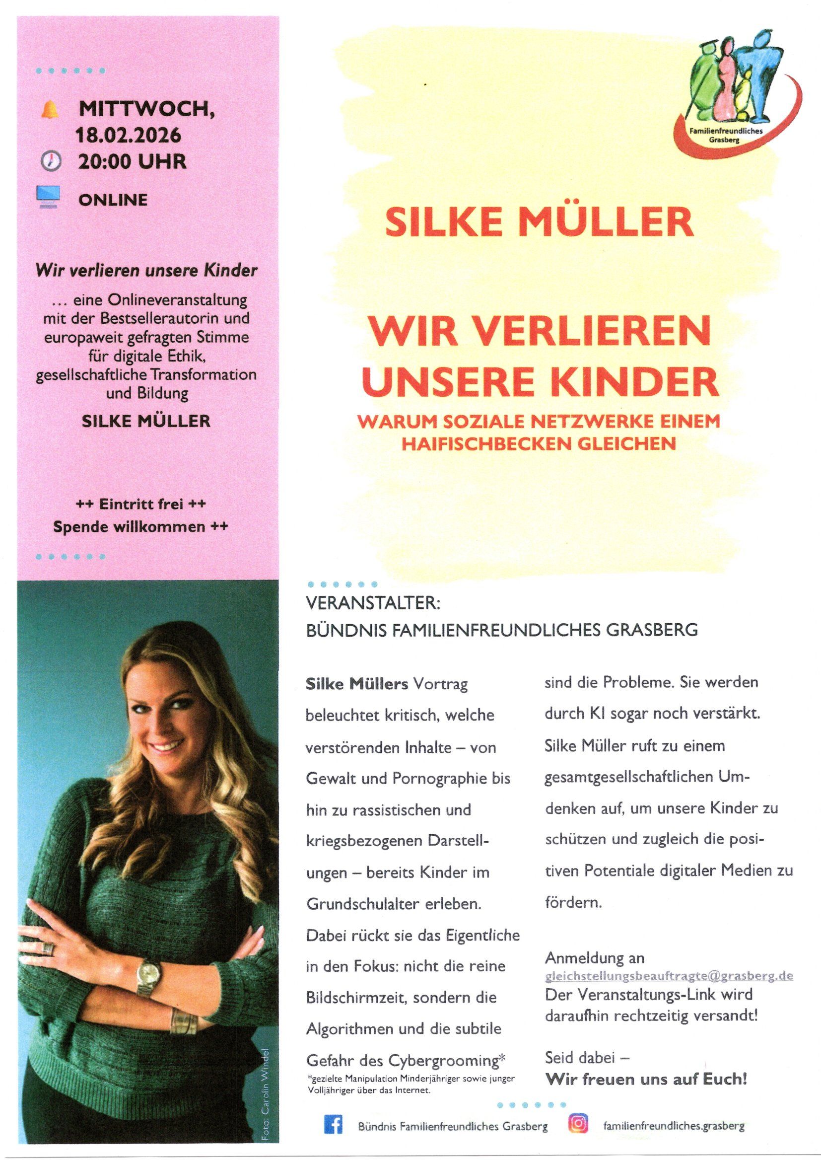 Silke Müllers Vortrag beleuchtet kritisch, welche verstörenden Inhalte – von Gewalt und Pornographie bis hin zu rassistischen und kriegsbezogenen Darstellungen bereits Kinder im Grundschulalter erleben. Dabei rückt sie das Eigentliche in den Fokus: nicht die reine Bildschirmzeit, sondern die Algorithmen und die subtile Gefahr des Cybergrooming*sind die Probleme. Sie werden durch KI sogar noch verstärkt. Silke Müller ruft zu einem gesamtgesellschaftlichen Umdenken auf, um unsere Kinder zu schützen und zugleich die positiven Potentiale digitaler Medien zu fördern.